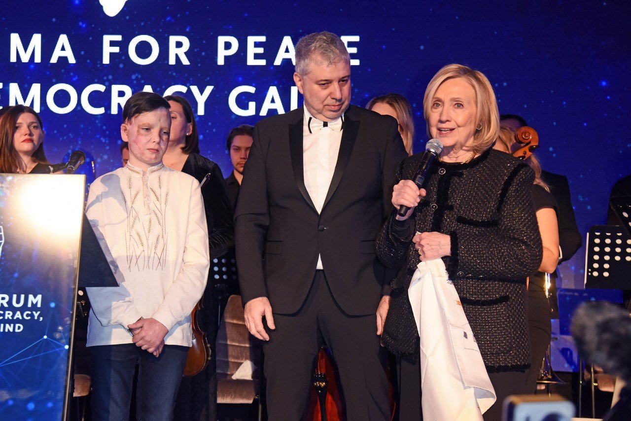 The prestigious award was presented in Berlin by former U.S. Secretary of State Hillary Clinton during the organisation's annual awards ceremony. Afineevsky was joined at the event by Roman, who is featured in the film, and together they received a standing ovation from the entire auditorium. In a heartfelt gesture, Afineevsky presented Clinton with a scarf featuring drawings from the children’s war diaries, which she wore throughout the evening, highlighting the human connection at the heart of the film.