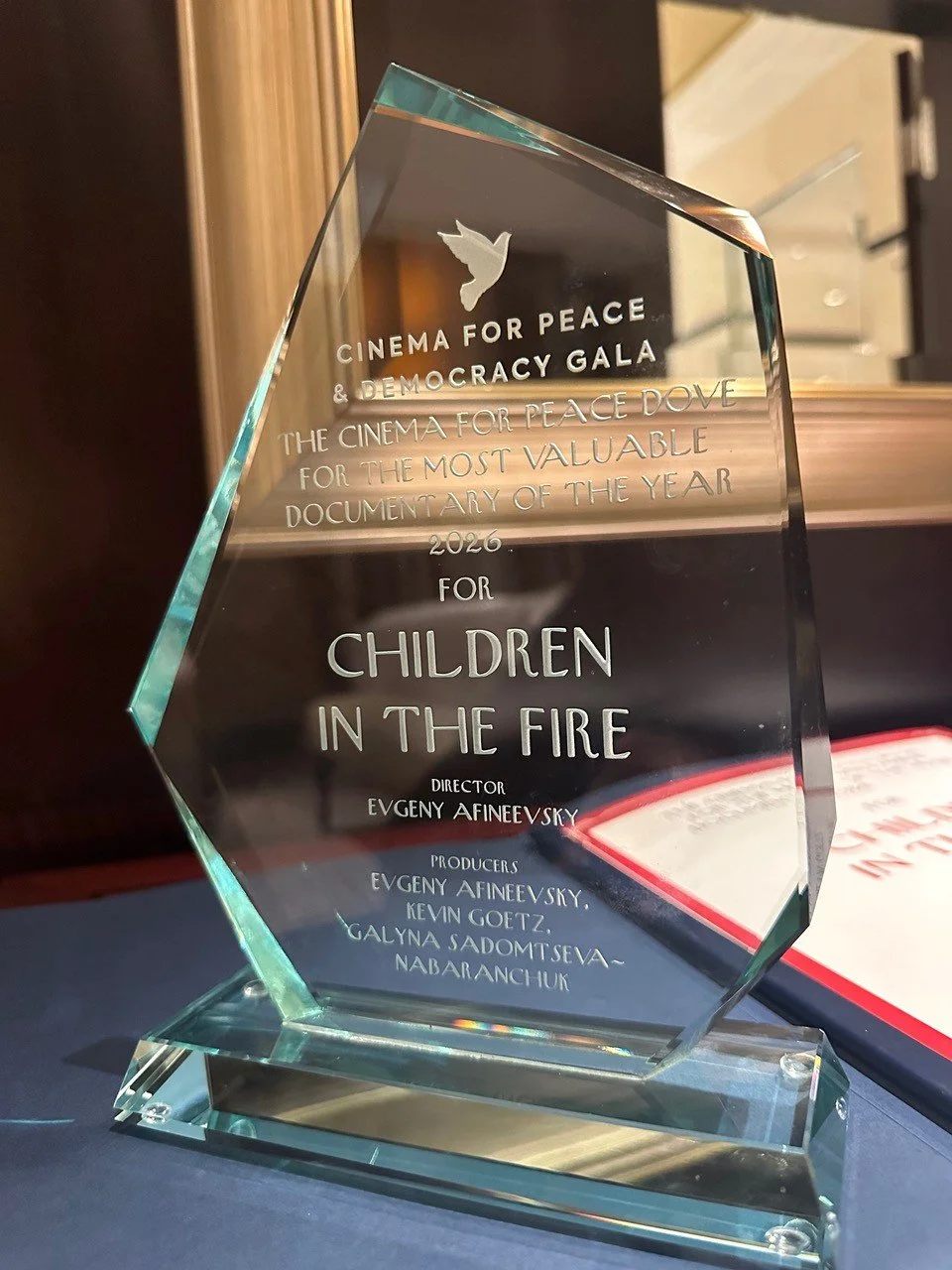 "Children in the Fire” documentry and Oscar and Emmy-nominated director Evgeny Afineevsky have been awarded the Cinema for Peace Dove for the Most Valuable Documentary of the year.